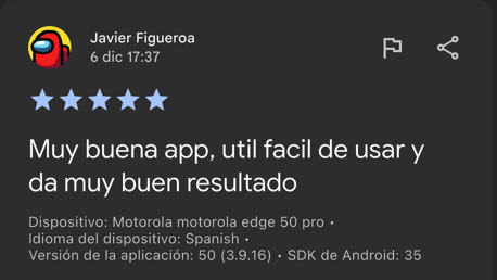 ✔ Usada hoy por cientos de miles de usuarios activos en la app que tiene más de 500´000 descargas en casi todos los países del planeta.