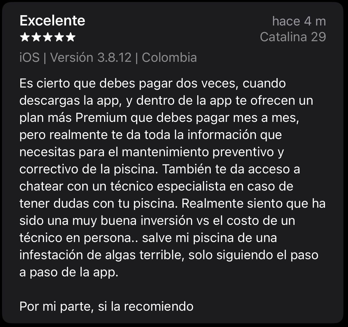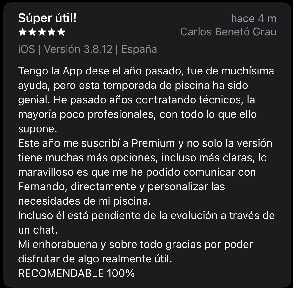 Además, es el creador de la app “Calculadora para Piscinas”, una herramienta usada en más de 25 países para ayudar tanto a usuarios principiantes como a profesionales a mantener la calidad del agua de forma precisa y segura, y con más de 500,000 usuarios que la descargaron, se consagra como la aplicación más utilizada a nivel mundial para el mantenimiento de piscinas, piletas, albercas, jacuzzis o spas, caracterizándose por hacer totalmente fácil, rápido y económico el cuidado de las albercas en todo el planeta.